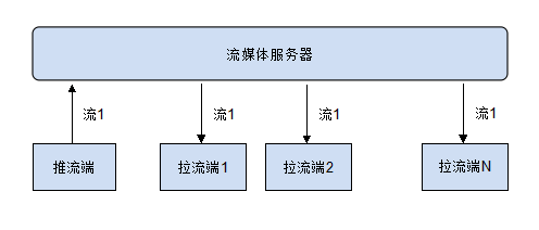 如果多个用户需要播放同一个实时流数据,那么理想情况下,推流端的数据应该可以复用,也就是说,推流端只需要推一路流,供多个播放终端使用。此时推流端和播放端是一对N的关系。