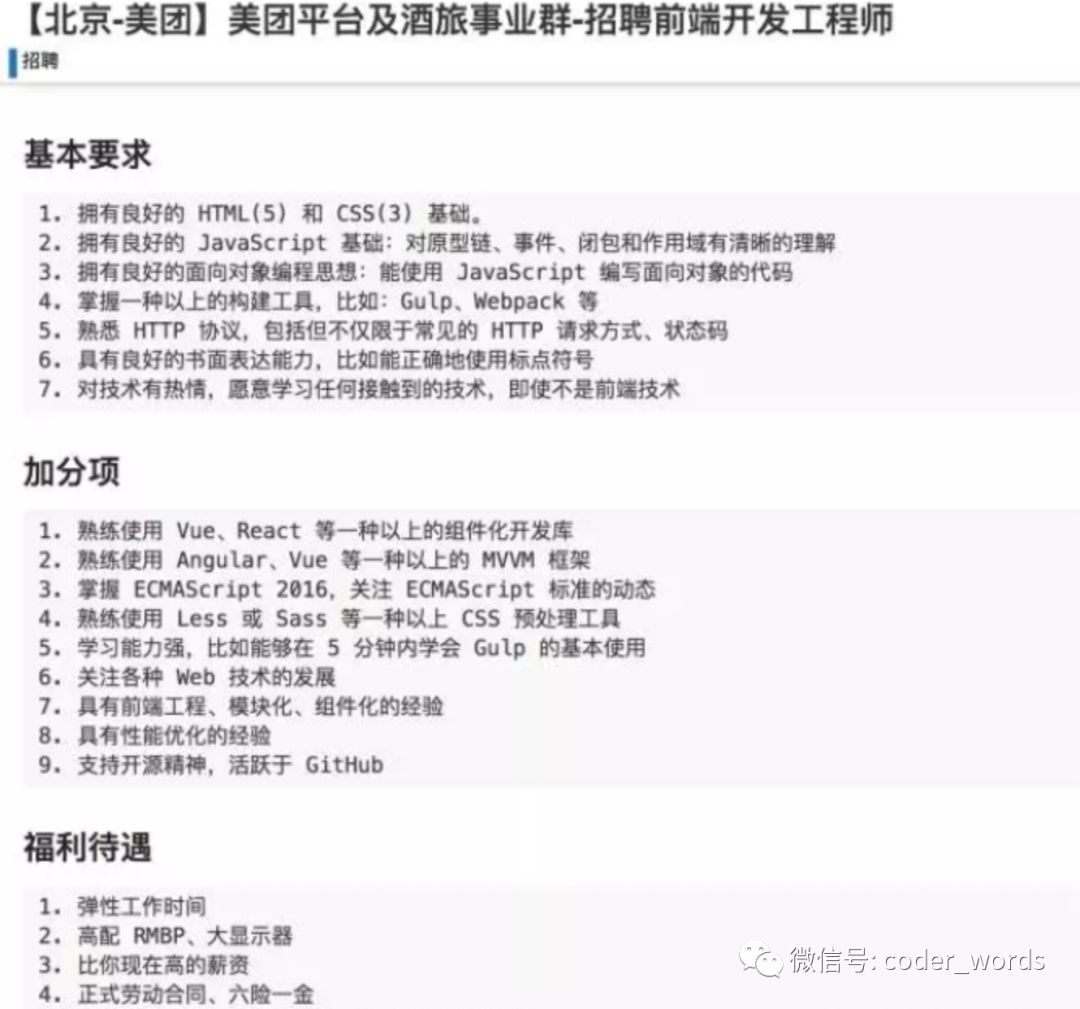 就这样,反反复复来来回回把这本书翻了三遍,期间也接触了一些流行的前端框架和构建工具。终于,我在看到美团的社招信息后,勇敢地迈出了第一步。
