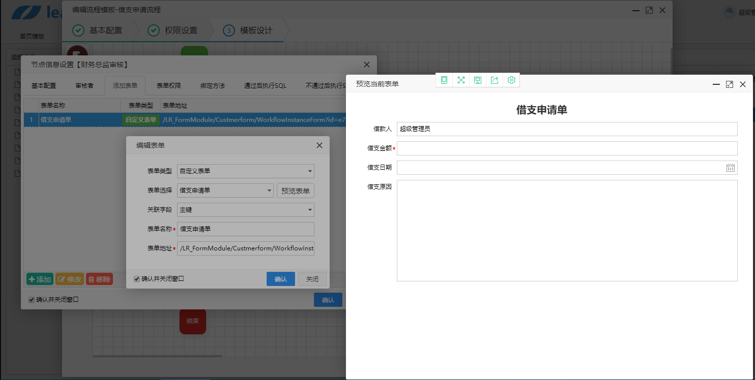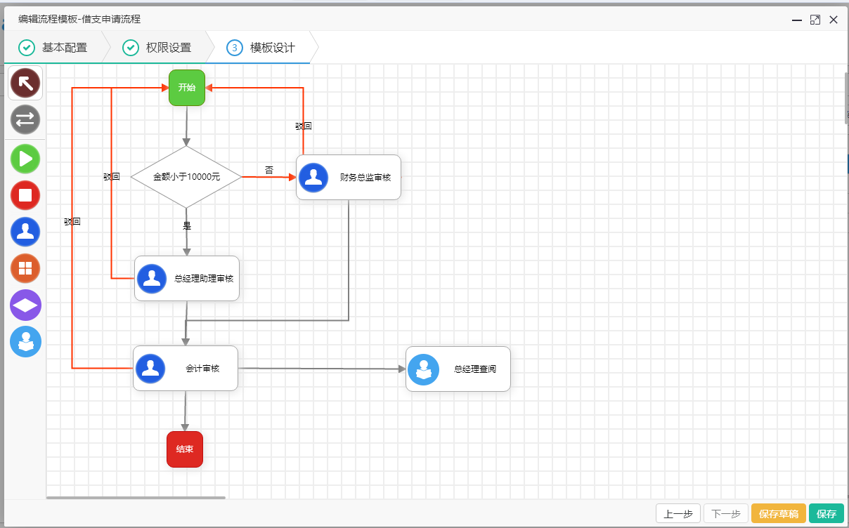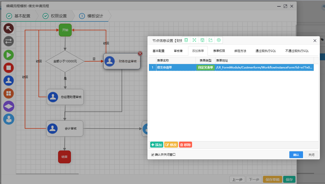 此外,还可以借助可视化流程设计器来设计工作流程图,节点设置中可以灵活地配置节点执行人,执行策略。在流程执行中甚至可以向执行人发送通知。