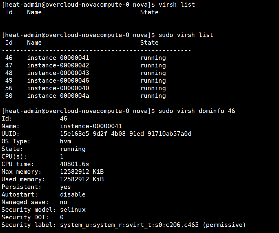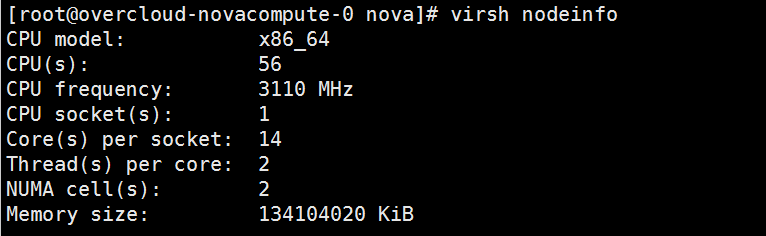 Hypervisor 最清楚计算节点的信息,可以通过 virsh nodeinfo 和 virsh dominfo 命令查看计算节点和instance的信息: