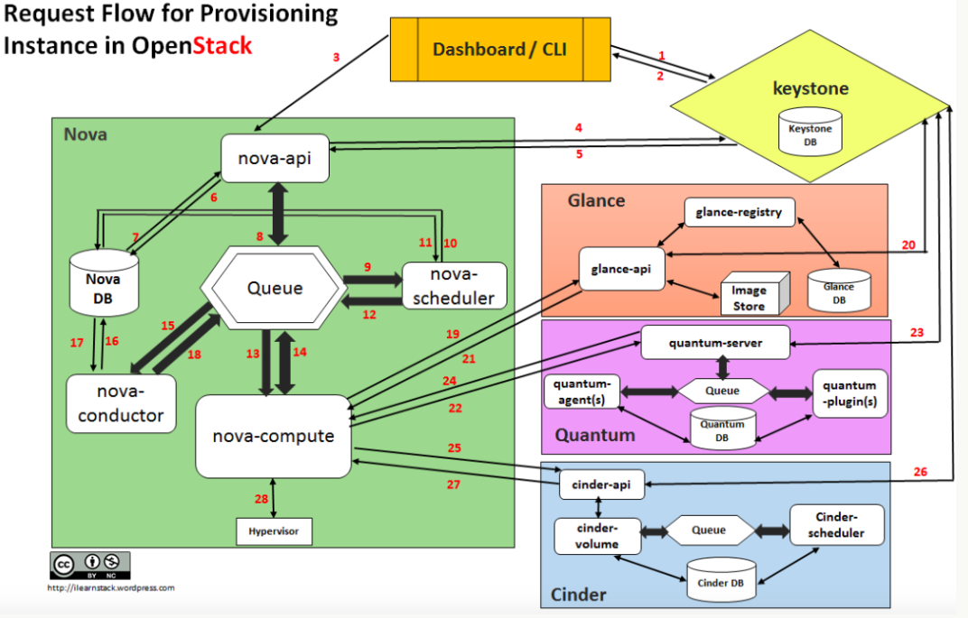 这篇文章写的非常好: https://ilearnstack.com/2013/04/26/request-flow-for-provisioning-instance-in-openstack/ ,强烈推荐,这里不做赘述 。
