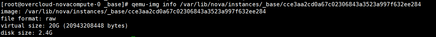 将上传的 image 下载到 /var/lib/nova/instances/_base/ 目录下,下载下来的 image uuid 为 cce3aa2cd0a67c02306843a3523a997f632ee284, 通过 qemu-img info 命令查看该 image 的格式为: