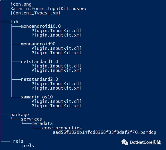 我刚刚解压缩了InputKit的nuget包,您可以在下图中看到nupkg文件的树状视图。