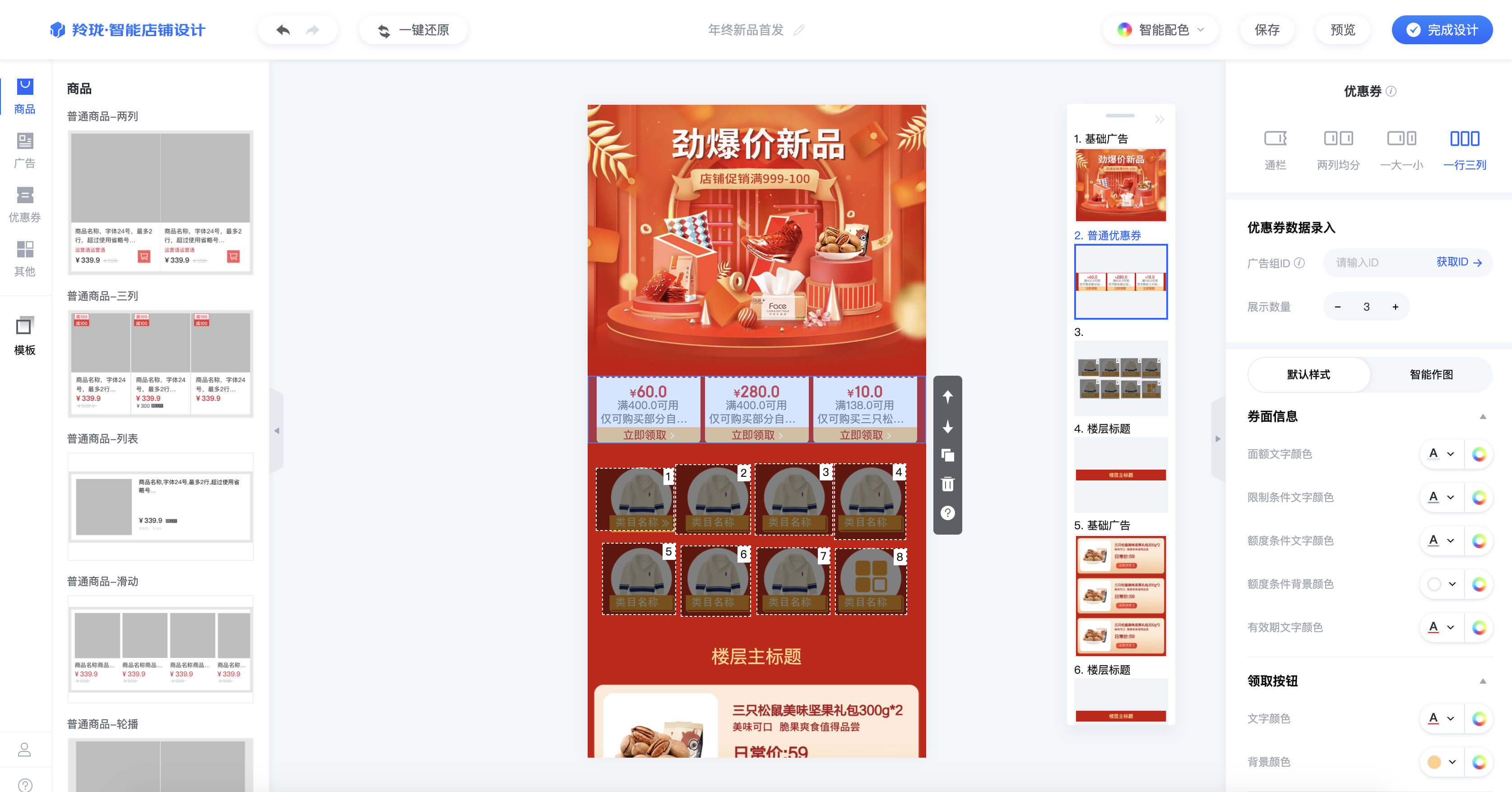 同样是 17 年,随着京东商城业务的蓬勃发展,传统的设计师作图,业务方套模板生产广告图等物料的方式已然非常落后,生产效率低下极度依赖人力,同时也无法满足越来越多的个性化图片需求,为了应对这样的场景,我们开始打磨羚珑智能设计平台,通过海量图片模板和基于用户数据实时合图能力,解放了设计师的双手,也节约了业务方获得高质量图片的成本,让每个人都能轻松完成图片制作。