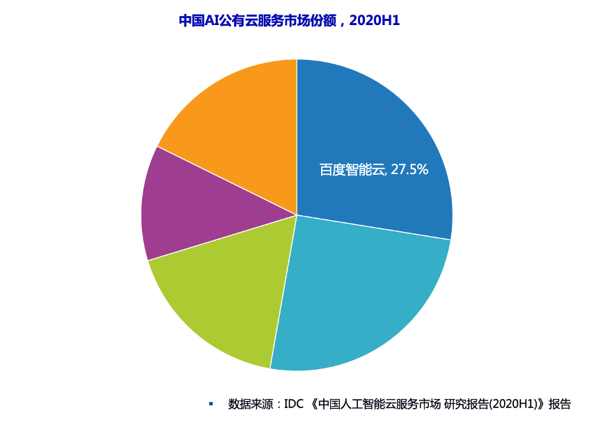 1、百度智能云以27.5%的市场份额排名第一,也是百度智能云连续三次在AI Cloud市场中排名第一;