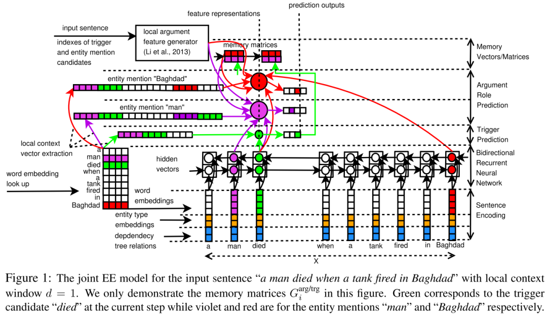 [20]Jointly Extraction Event Triggers and Arguments by Dependency-Bridge RNN and Tensor-Based Argument Interaction, AAAI 2018 : https://shalei120.github.io/docs/sha2018Joint.pdf