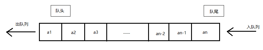 队列是先进先出的线性表,简称FIFO。允许插入的一端称为队尾,允许删除的一端称为队头。如下图所示