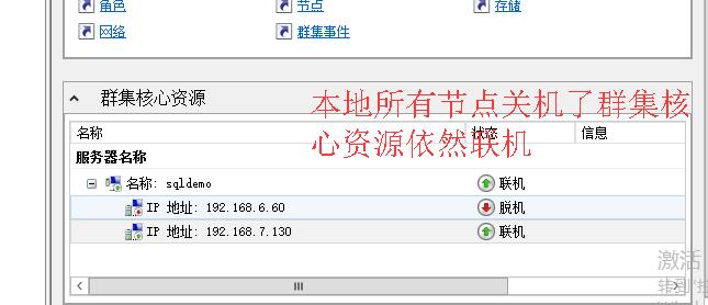 故障转移之后会发现异地节点的侦听器ip联机,本地节点的侦听器ip脱机