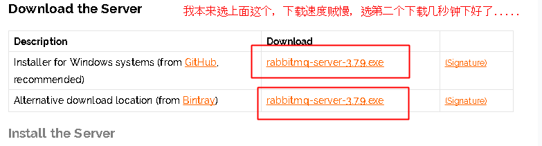 一番努力之后这个erlang下好了,然后到http://www.rabbitmq.com/install-windows.html下载,如果点了下面这个跳转到了github,就点9M多的那个文件进行下载,下完之后也是一直下一步。