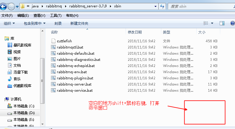 打开rabbitmq_server-3.7.9,有个sbin,进去,打开命令窗口