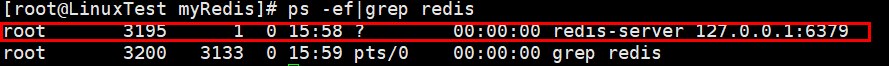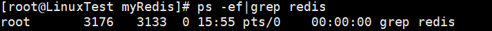 3.执行【ps -ef|grep redis】命令查看redis服务是否启动。当前是未启动状态。