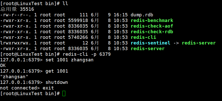 shutdown exit 退出客户端并关闭redis服务器。