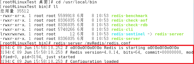 4.在redis的安装目录下执行【redis-server /myRedis/redis.conf】命令启动redis服务。当前为启动状态。这里的【/myRedis/redis.conf】根据自己配置文件存放的位置决定。