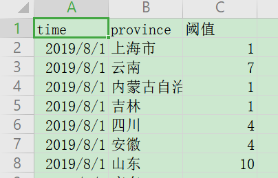 现在我们有这样一份数据,有时间,省份,阈值,需要以时间序列展示每一天每一个省份的阈值,且可以保存某一天的图表数据。