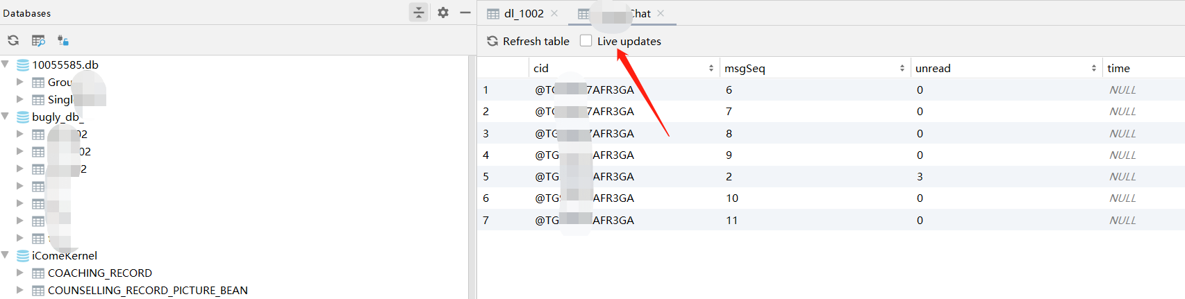 左边是数据库和表,点击查看右边显示书中的内容,Live updates 的意思是否需要当数据库内容发生更变时,时时更新,是不是发现很简单