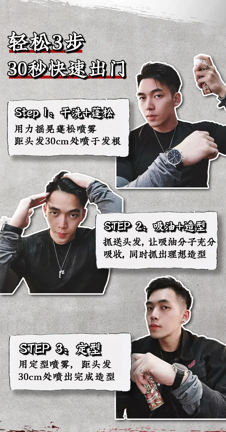 这个造型套装可以说非常齐全了!蓬松+定型,只需三步,三十秒就可以get到一个帅气持久的造型!