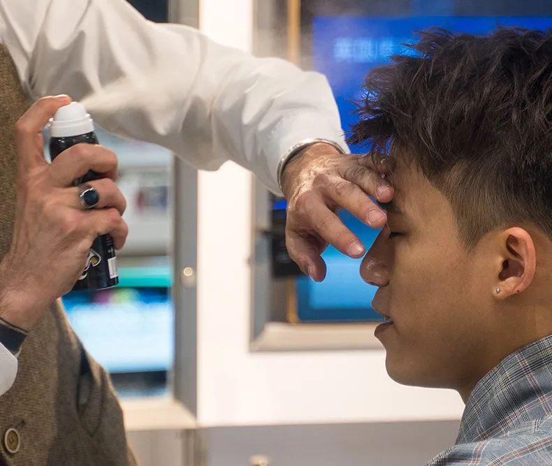 只是对着油腻的头发,轻轻的喷几下,再用手随意的抓一抓头发。