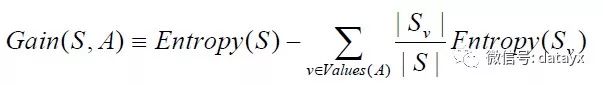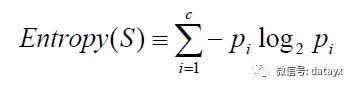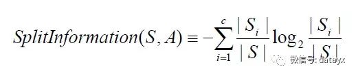 设样本集S按离散属性F的c个不同的取值划分为c个子集,则这c个子集的信息熵为: