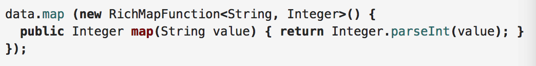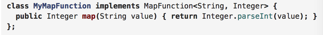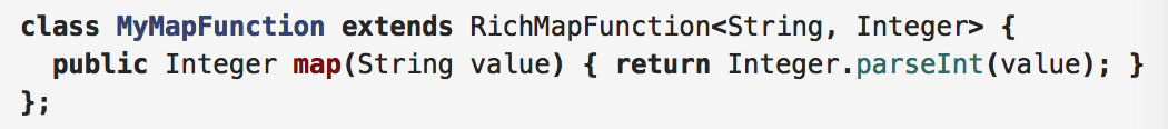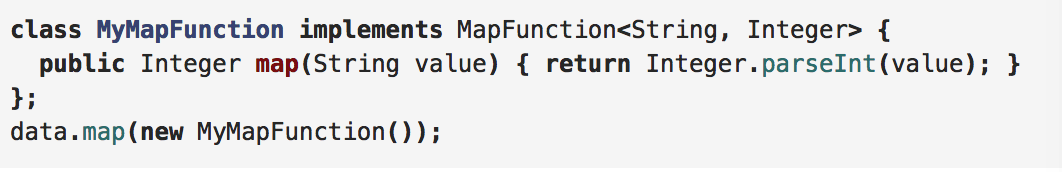 大多数的转换操作需要用户自己定义函数,可以通过实现MapFunction接口,并重写map函数来实现。