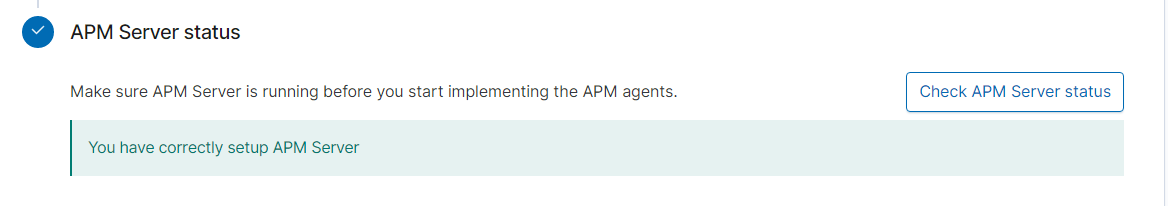 运行apm-server 运行命令 , ./apm-server -e,此时返回Kibana apm 向导页,apm-server状态为已连接。