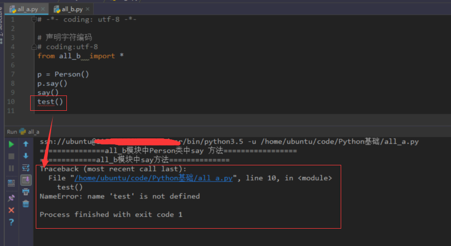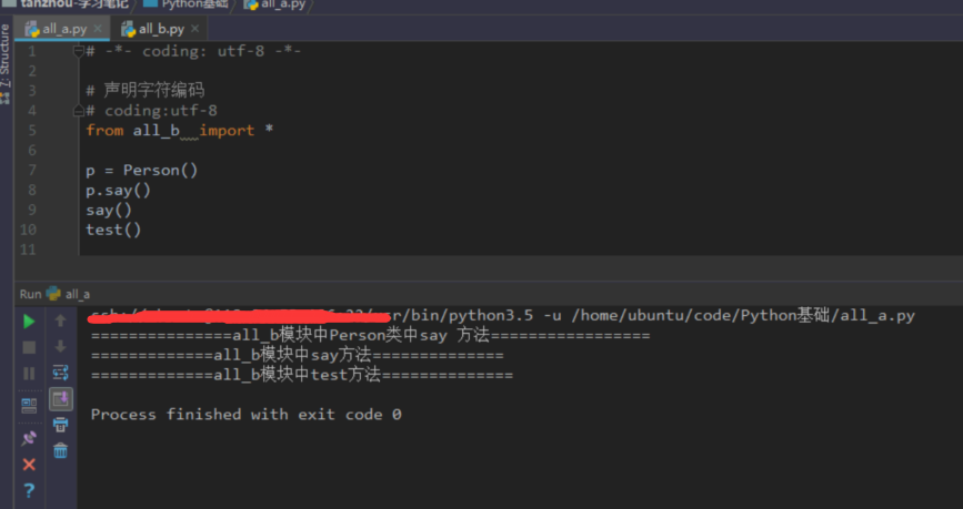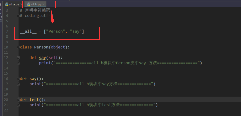 - 如果一个文件中有__all__变量,那么也就意味着不在这个变量中的元素,不会被from xxx import *时导入