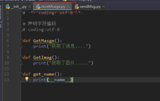 # 当前文件调用 modular.receMsage 模块下的 get_name方法,打印__name__值为:modular.receMsage