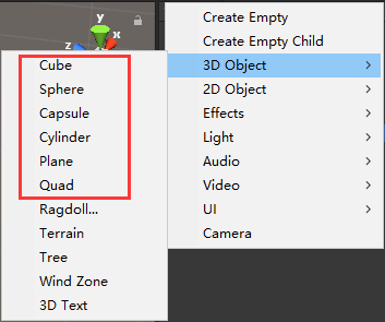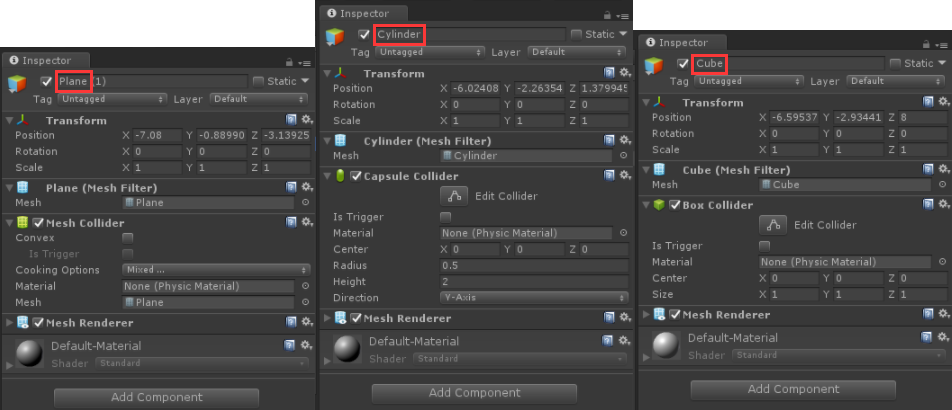 在目前版本里(2017.3.0),上述这些3d object都自带collider组件。