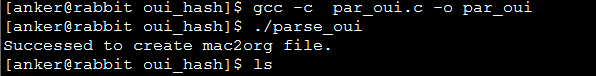 更进一步抽取mac和org信息,可以对mac_hex_org.txt文件进行提前,采用一个简单的shell脚本,提前mac列和org列,分别保存在MAC.log和ORG.log文件中。shell脚本mac_org.sh如下: