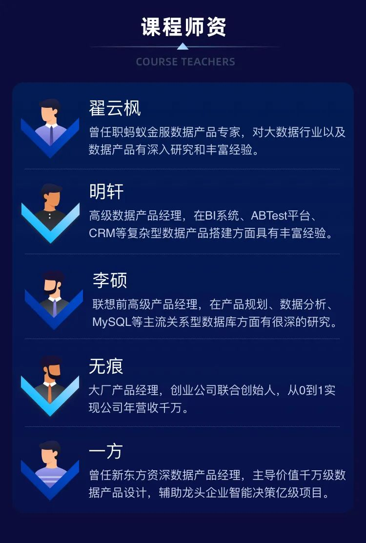 课程特地邀请了来自一线大型互联网公司的数据产品专家。