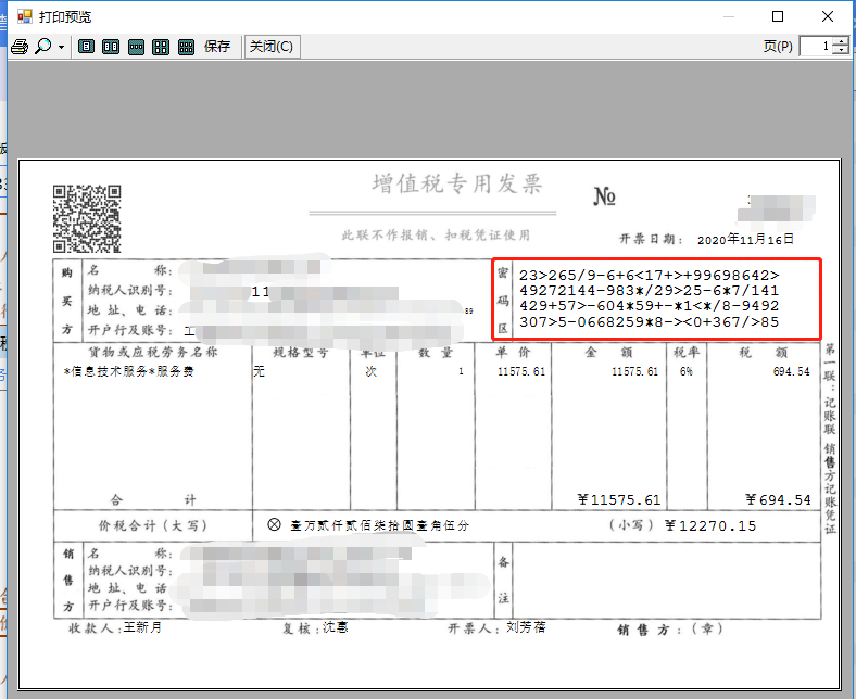 据作者本人推测,这样做起码在UI界面通过技术手段拿不到完整的发票数据,在这个环节保障的发票数据的安全。但在发票打印的时候,发票密文区数据肯定是要打印出来的,否则打印的发票就不完整,打印出来也就不是发票了。
