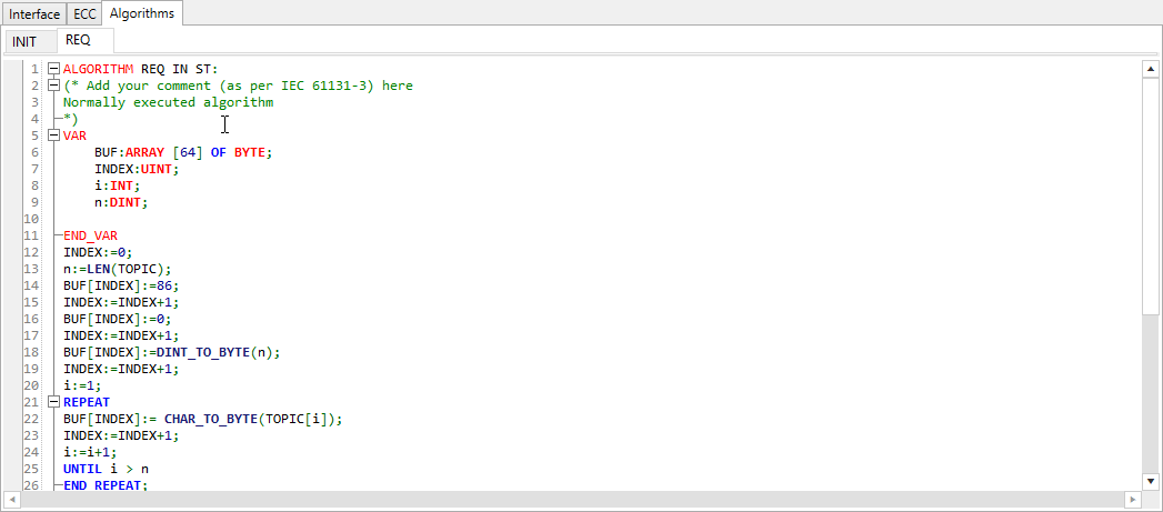 点击工作区中的Algorithms。选择REQ 事件的算法。使用ST语言编写。