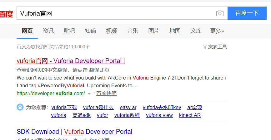 第一步:打开网页,进入Vuforia官网:https://developer.vuforia.com/home-page,也可以直接百度,第一条就是,点击进入,