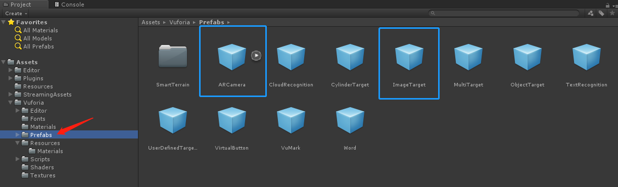 接下来将你想要在AR中显示的东西拖成Image Target的子物体就可以了.