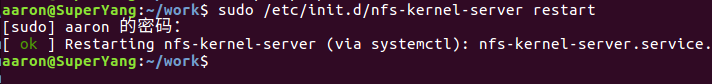 配置完成后,重启 NFS 服务:sudo /etc/init.d/nfs-kernel-server restart