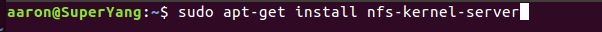 输入命令 sudo apt-get install nfs-kernel-server 安装 nfs-kernel-server: