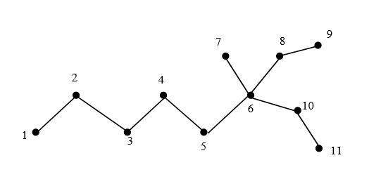2)分支深度不能大于1。如下图,左面的分支为 6-7、6-8,深度均为1;右图分支为 6-7、6-8-9,深度为1和2。