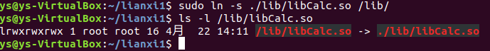 sudo ln -s ~/lianxi1/lib/libCalc.so /lib/
