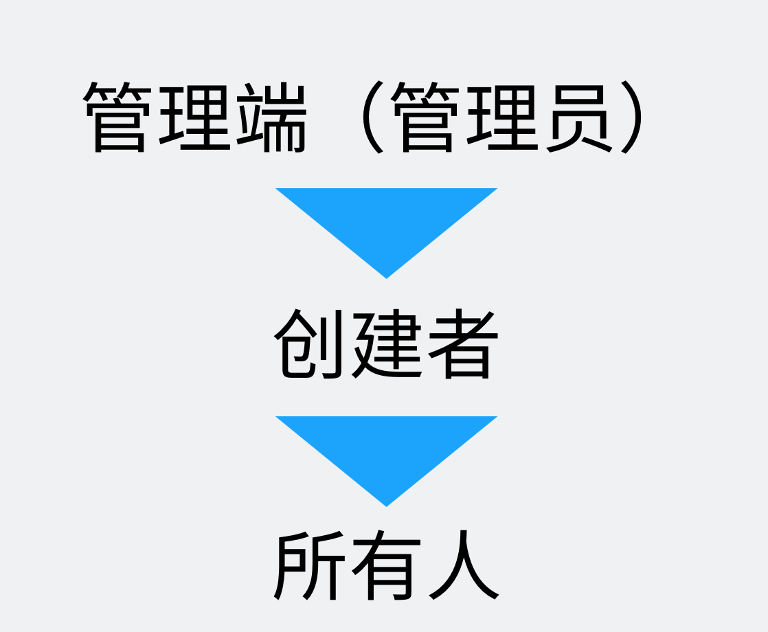 从权限的层面上来看,从管理端到创建者再到所有人,权限是依次收紧的。
