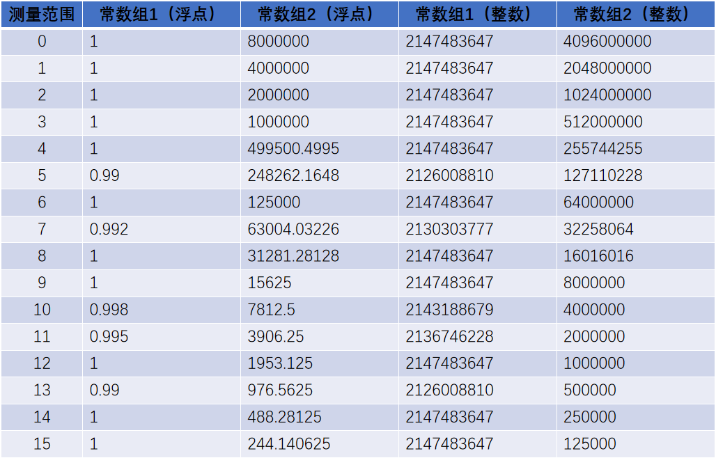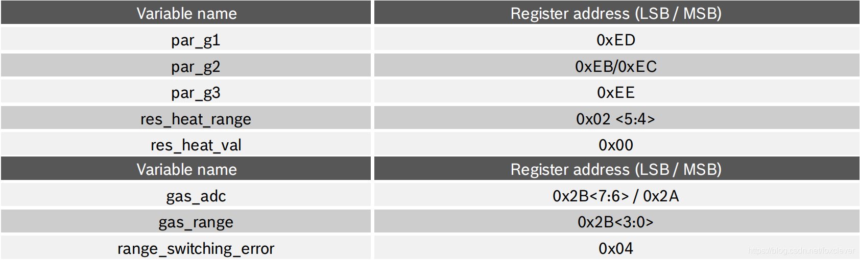 对于BME680环境传感器有一个测量范围寄存器,这个寄存器的值对应两组计算常数,这下常数用于测量值的计算,具体如下: