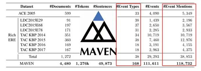 首先,MAVEN是大规模的,人工标注的,具有高覆盖率的一个数据集。