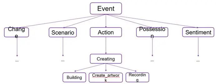 在做数据标注之外,要保证数据集有一个好的覆盖率,因此从FrameNet中推导派生出了一个Event Type Schema,它的特点是不仅覆盖率比较高,而且具备层次化,有比较明确的父子继承关系,会比较方便后面的模型做一些工作。这里展示的仅仅是一小部分的例子,如果对整个的168个事件的schema感兴趣,可以参阅论文的附录。