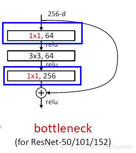 残差网络的Bootleneck残差模块里: