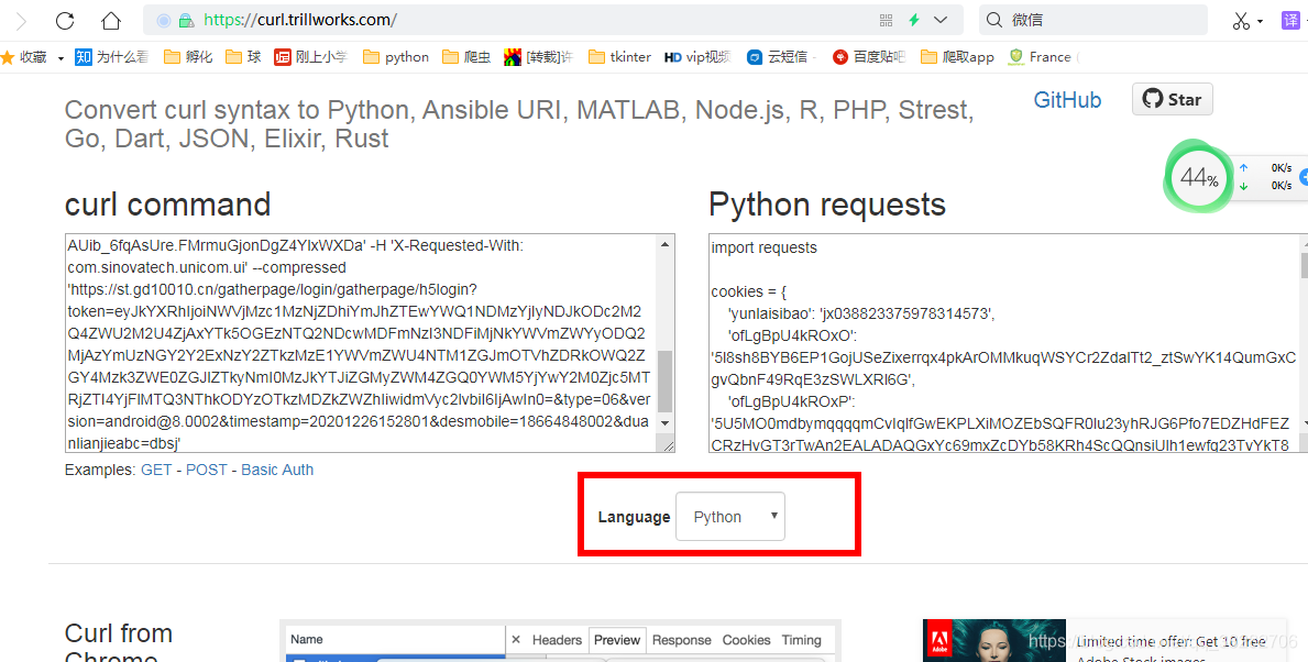 4.网页请求转化为Python requests的网站https://curl.trillworks.com/