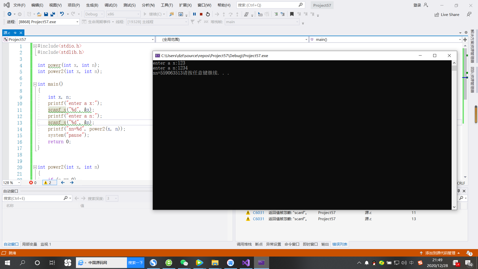 (1)编写函数 power,利用公式 x n =x*x n- 计算 x n