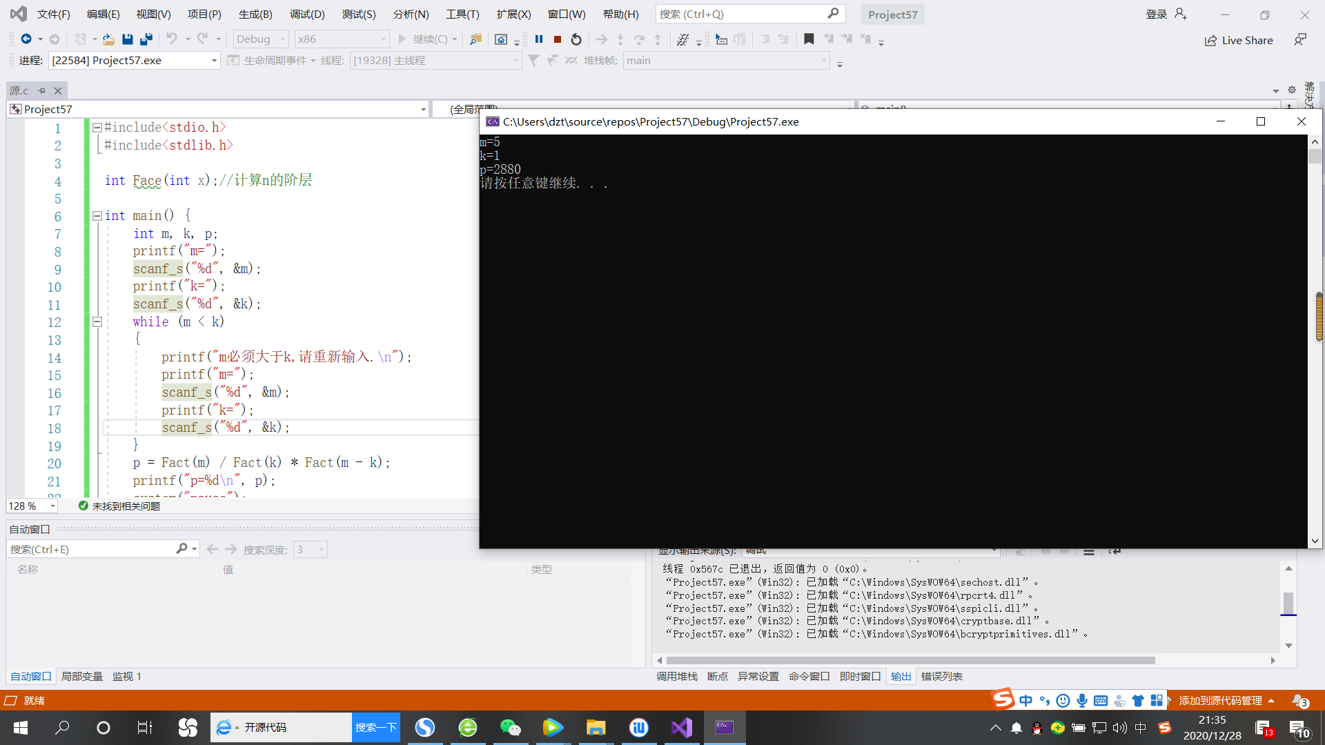 1.编写函数 fact(int n) 实现求 n!,在主函数中输入 m 和 n,调用 fact( )函数求 的值。