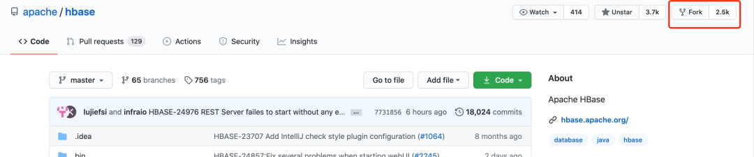 登陆 github,然后在 github 上面 fork 一下 apache/hbase