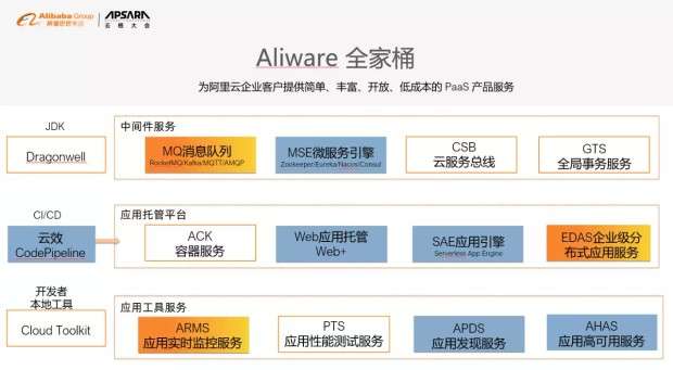阿里云此次推出的应用上云新模式,向业务技术团队提供了更多的选择,通过简单、丰富、开放和低成本的 PaaS 产品服务集,帮助企业客户在云上进行自主选型,搭建更符合业务需要和团队情况的技术体系。据悉,已有包括中国移动国际公司、华帝集团、数跑科技、亚信科技、云途时代、信用算力等来自金融、软件 IT 、互联网、零售等行业的客户通过 Aliware 全家桶在云进行技术创新,实现数字化转型。