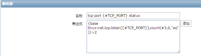 此处要确实注意端口变量{#TCP_PORT}名称要与上面脚本中的保持一致。