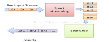 首先,Spark Streaming把实时输入数据流以时间片Δt (如1秒)为单位切分成块。Spark Streaming会把每块数据作为一个RDD,并使用RDD操作处理每一小块数据。每个块都会生成一个Spark Job处理,最终结果也返回多块。