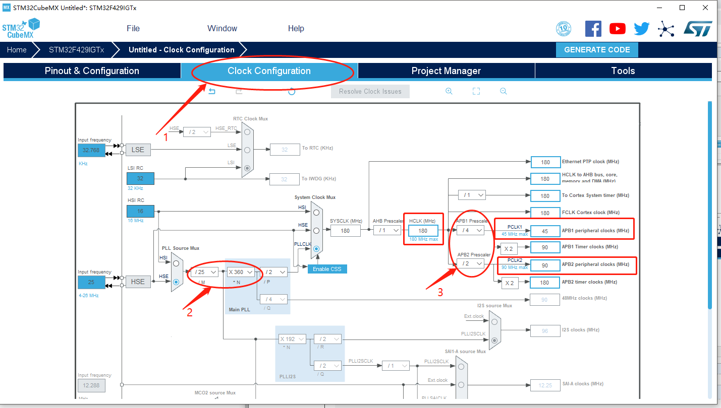 4)时钟配置(尽量将下面方框内的值设成最高值即可)